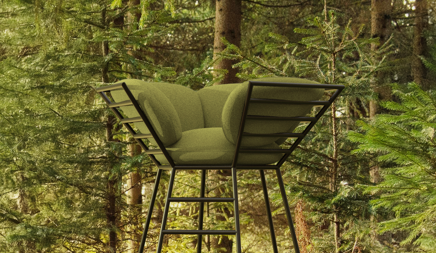 Ambonka is a uniquely designed chair that immerses users in nature, offering an escape from everyday stress. Its elevated height provides a fresh perspective on the environment, deepening understanding of natural structures and renewing appreciation for their beauty. This experience highlights the importance of the natural world and the need for its protection. The design references hunting stands, facilitating nature observation, and treehouses, encouraging outdoor play, which many adults have left behind. Additionally, Ambonka’s form draws inspiration from natural shapes like honeycombs, spider webs, flowers, trees, and nests.